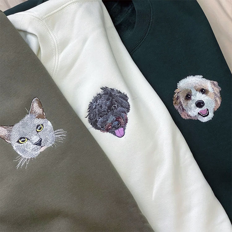Shop NowShow off your furry friend with custom pet portrait t-shirts. Provide us with a picture of your pet, and we'll create a detailed embroidery design for your shirt.